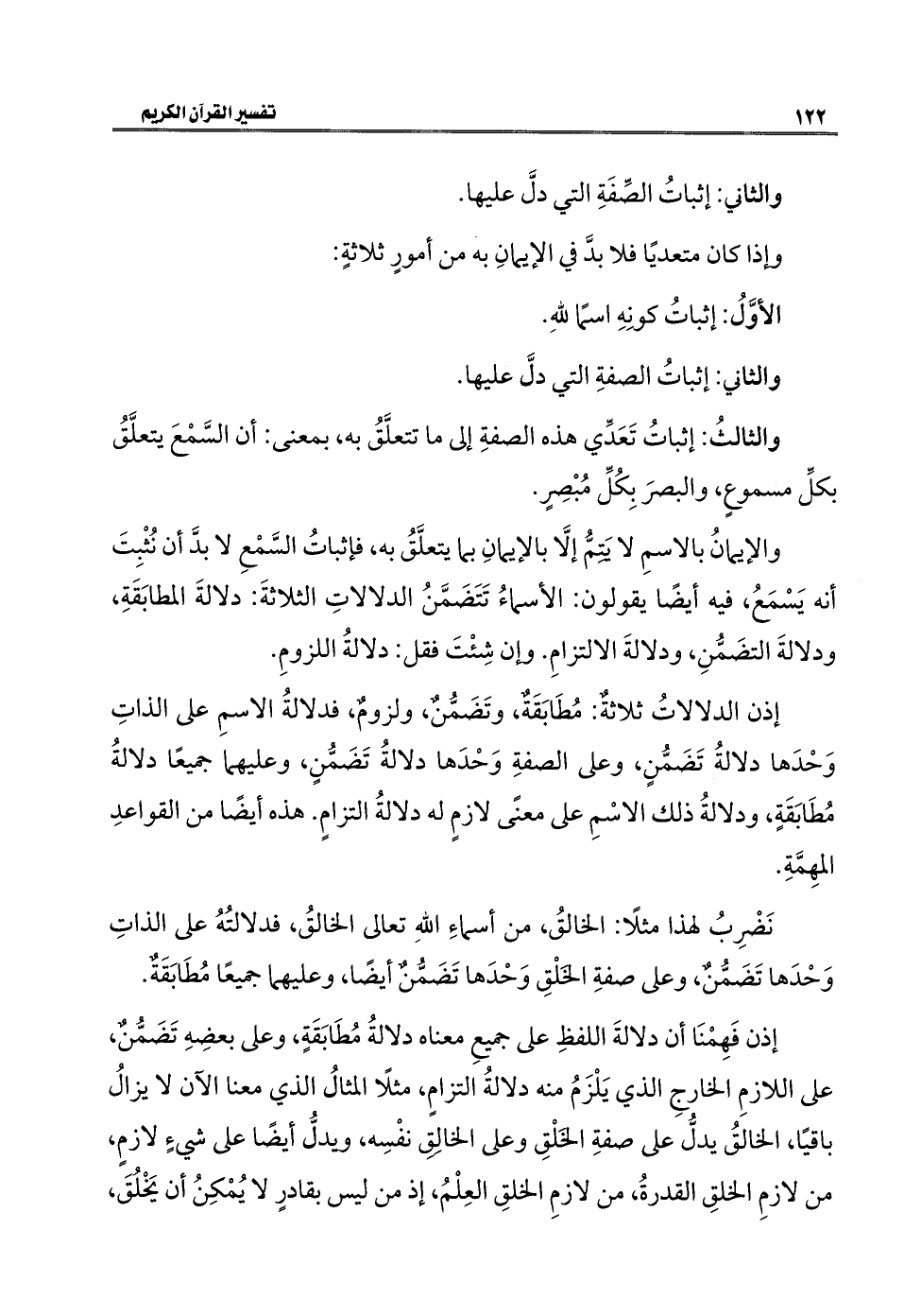 والإيمانُ بالإسمِ لا يَتِمُّ إلَّا بالإيمانِ بما يتعلَّقُ به، فإثباتُ السَّمْعِ لا بدَّ أن نُثْبِتَ أنه يَسْمَعُ، فيه أيضًا يقولون: الأسماءُ تَتَضَمَّنُ الدلالاتِ الثلاثةَ: دلالةَ المطابَقَةِ، ودلالةَ التضَمُّنِ، ودلالةَ الإلتزامِ. وإن شِئْتَ فقل: دلالةُ اللزومِ.