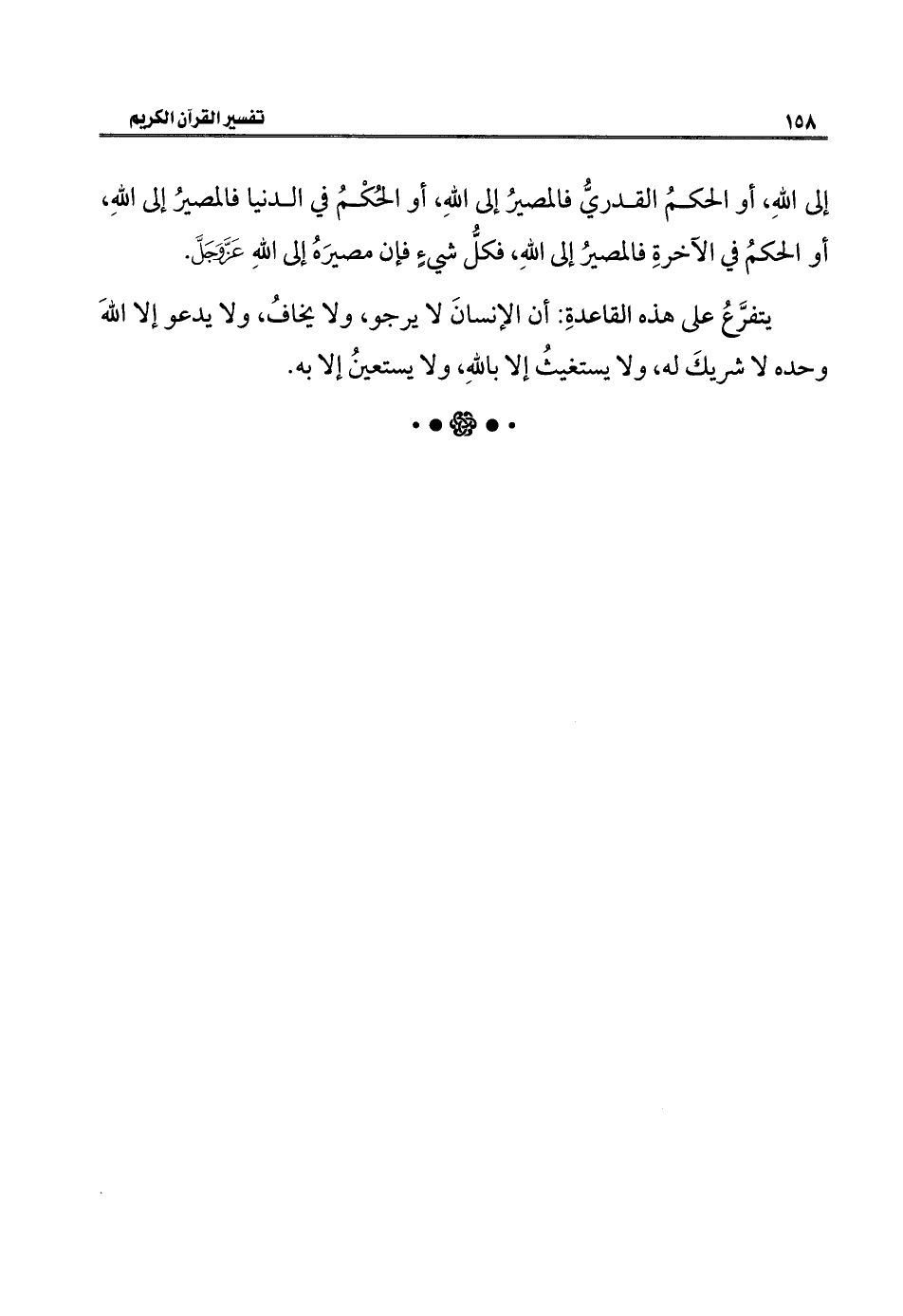 يتفرَّعُ على هذه القاعدةِ: أن الإنسانَ لا يرجو، ولا يخافُ، ولا يدعو إلا اللهَ وحده لا شريكَ له، ولا يستغيثُ إلا باللهِ، ولا يستعينُ إلا به.