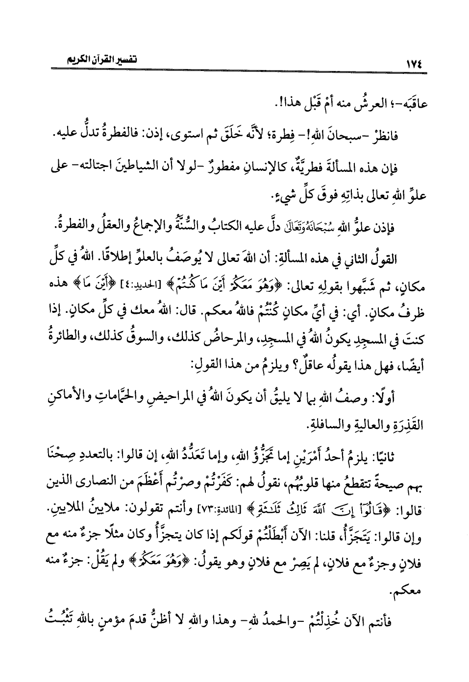 فإذن علوُّ اللهِ سُبْحَانَهُ وَتَعَالَى دلَّ عَلَيْهِ الكتابُ والسُّنَّةُ والإجماعُ والعقلُ والفطرةُ.