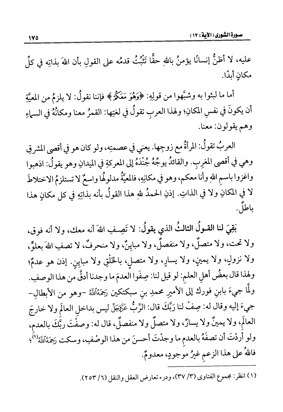 (¬١) انظر: مجموع الفتاوى (٣/ ٣٧)، ودرء تعارض العقل والنقل (٦/ ٢٥٣).