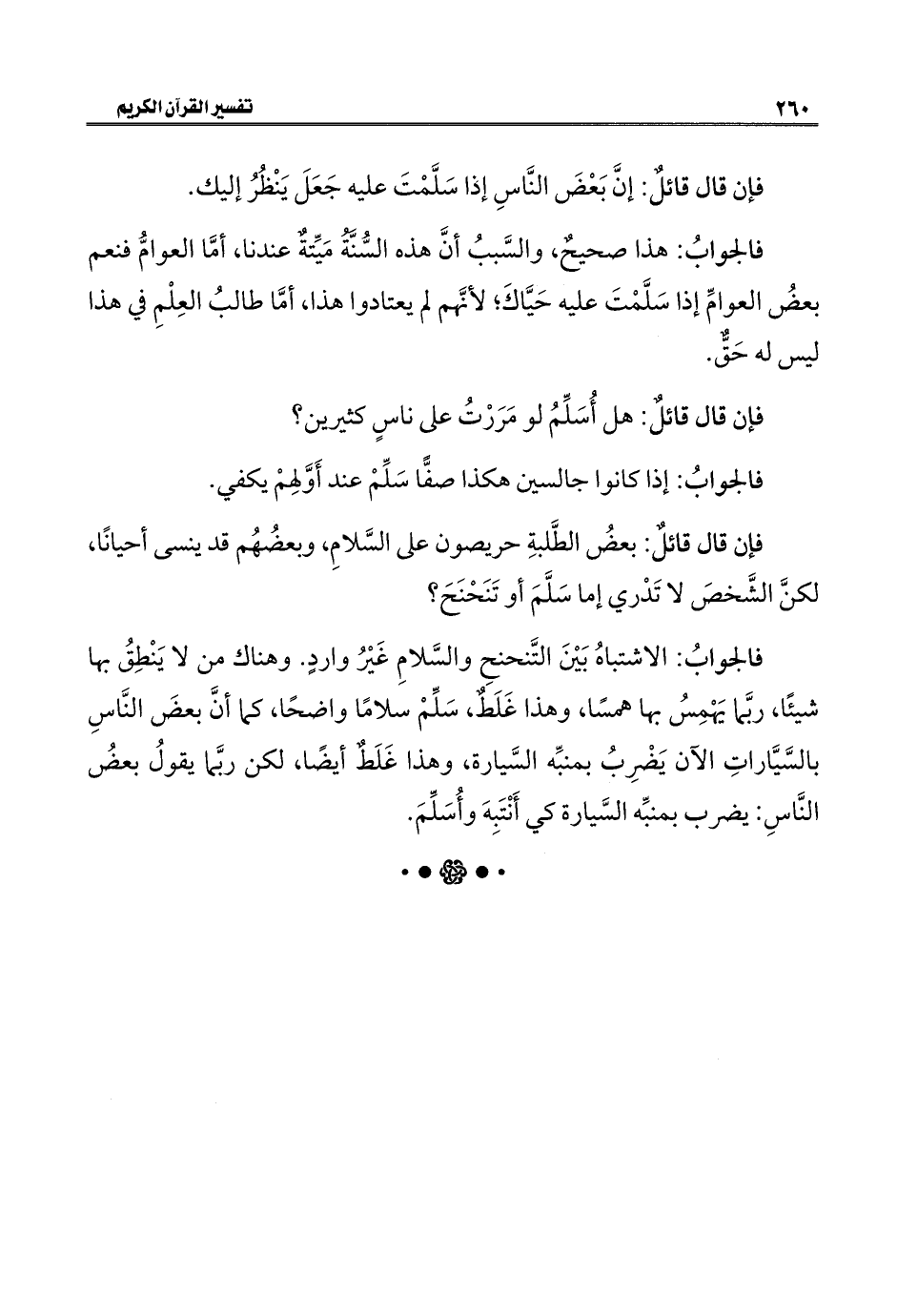 فإن قال قائلٌ: هل أُسَلِّمُ لو مَرَرْتُ على ناسٍ كثيرين؟