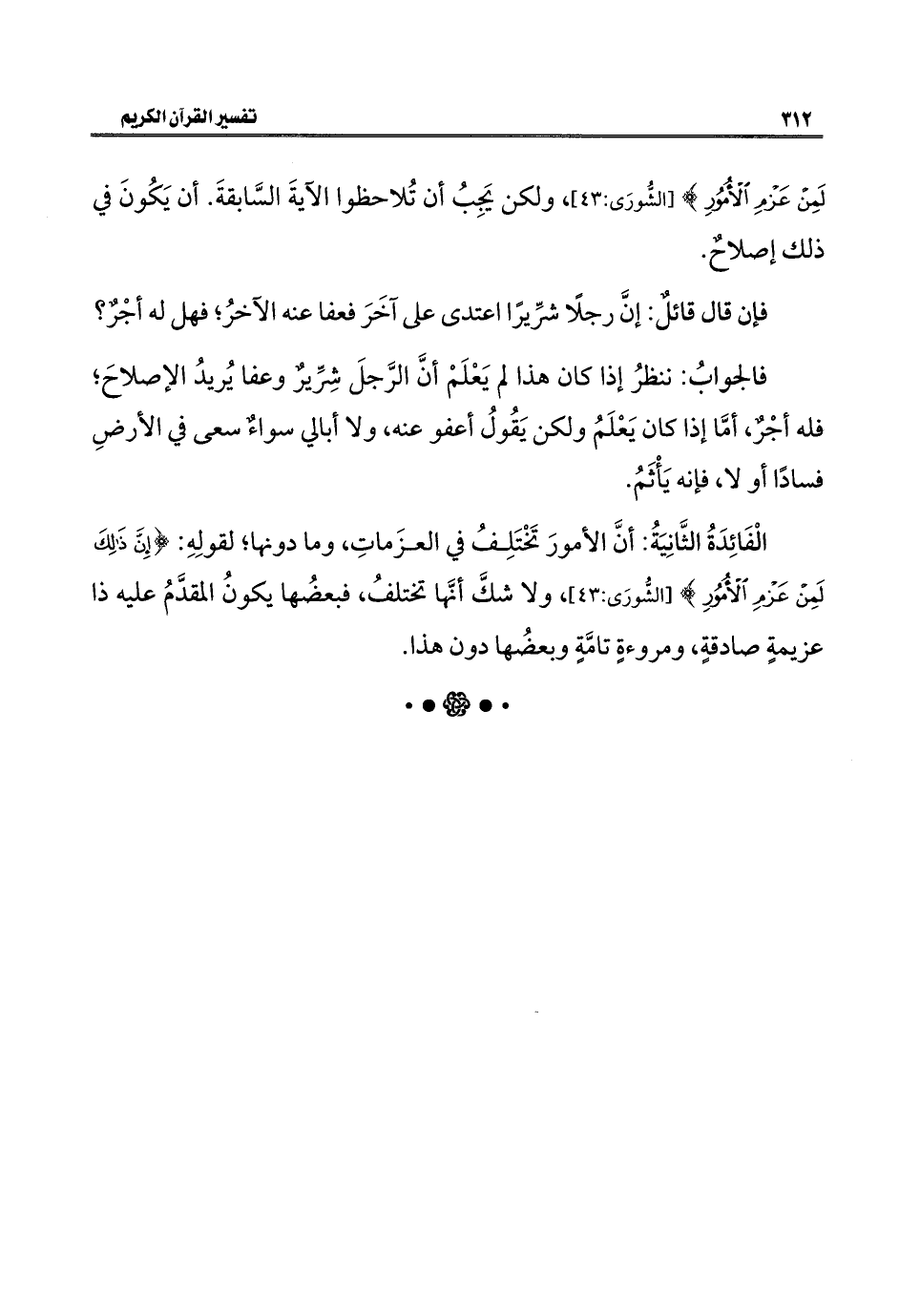 لَمِنْ عَزْمِ الأُمُورِ} [الشُورَى: ٤٣]، ولكن يَجِبُ أن تُلاحظوا الآيةَ السَّابقةَ. أن يَكُونَ في ذلك إصلاحٌ.