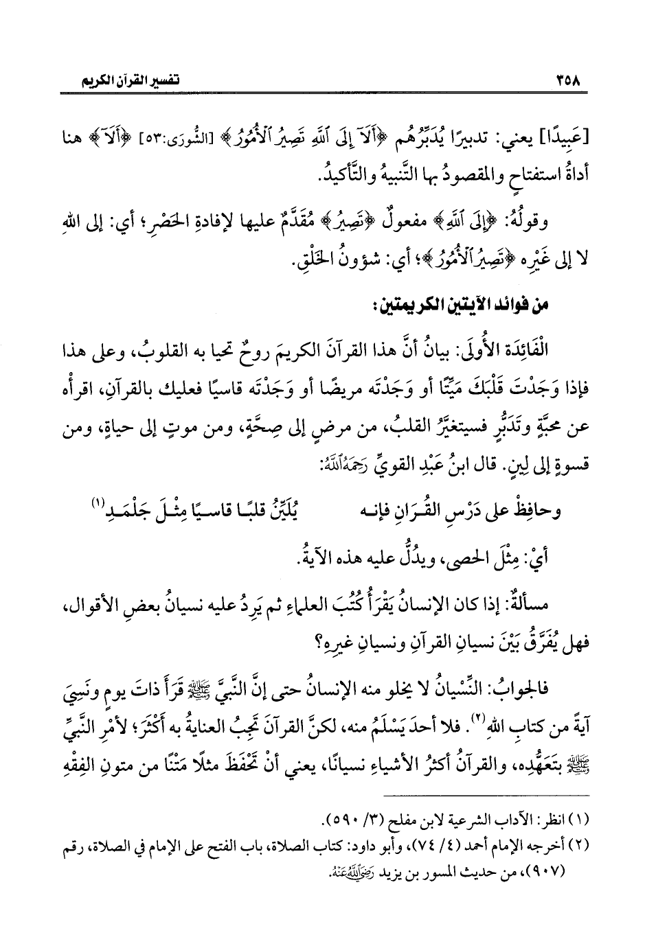 [عَبِيدًا] يعني: تدبيرًا يُدَبِّرُهُم {أَلَا إِلَى اللَّهِ تَصِيرُ الْأُمُورُ} [الشُّورَى: ٥٣] {أَلَا} هنا أداةُ استفتاحٍ والمقصودُ بها التَّنبيهُ والتَّأكيدُ.