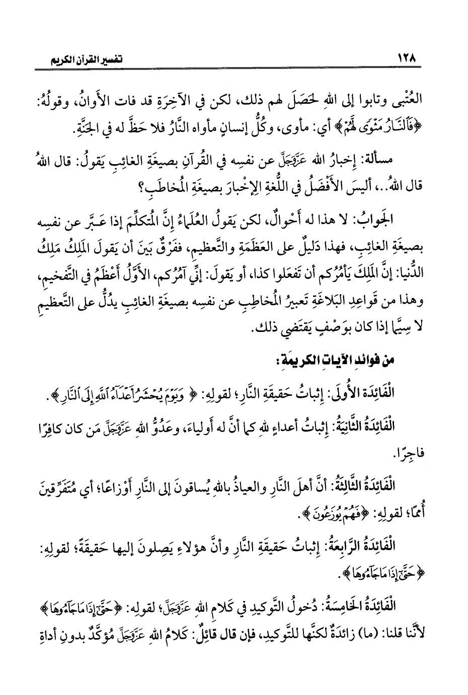 الجَوابُ: لا هذا له أَحْوالٌ، لكن يَقولُ العُلَماءُ إِنَّ المُتكلِّمَ إذا عَبَّر عن نفسِه بصيغَةِ الغائِبِ، فهذا دَليلٌ على العَظَمَةِ والتَّعظيمِ، ففَرْقٌ بَينَ أن يَقولَ المَلِكُ مَلِكُ الدُّنيا: إنَّ المَلِكَ يَأمُرُكم أن تَفعَلوا كذا، أو يَقولَ: إنِّي آمُرُكم، الأوَّلُ أَعْظَمُ في التَّفخيمِ، وهذا من قَواعِدِ البَلاغَةِ تَعبيرُ المُخاطِبِ عن نفسِه بصيغَةِ الغائِبِ يدُلُّ على التَّعظيمِ لا سِيَّما إذا كان بوَصْفٍ يَقتَضي ذلك.
