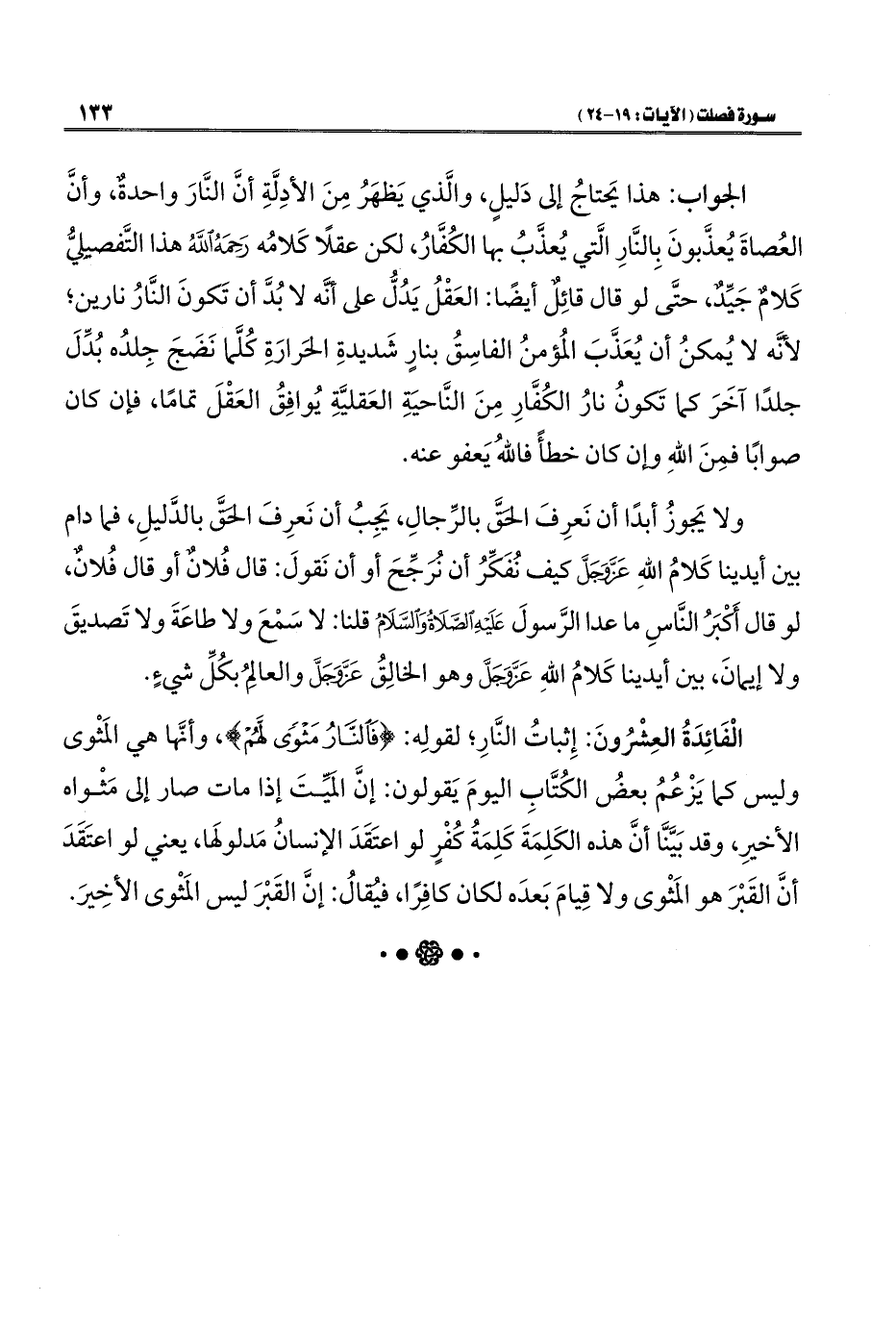 الجواب: هذا يَحتاجُ إلى دَليلٍ، والَّذي يَظهَرُ مِنَ الأدِلَّةِ أنَّ النَّارَ واحدةٌ، وأنَّ العُصاةَ يُعذَّبونَ بِالنَّارِ الَّتي يُعذَّبُ بها الكُفَّارُ، لكن عقلًا كَلامُه رَحِمَهُ اللهُ هذا التَّفصيليُّ كَلامٌ جَيِّدٌ، حتَّى لو قال قائِلٌ أيضًا: العَقْلُ يَدُلُّ على أنَّه لا بُدَّ أن تَكونَ النَّارُ نارين؛ لأنَّه لا يُمكنُ أن يُعَذَّبَ المُؤمنُ الفاسِقُ بنارٍ شَديدةِ الحَرارَةِ كُلَّما نَضَجَ جِلدُه بُدِّلَ جلدًا آخَرَ كما تَكونُ نارُ الكُفَّارِ مِنَ النَّاحيَةِ العَقليَّةِ يُوافِقُ العَقْلَ تمامًا، فإن كان صوابًا فمِنَ اللهِ وإن كان خطأً فاللهُ يَعفو عنه.