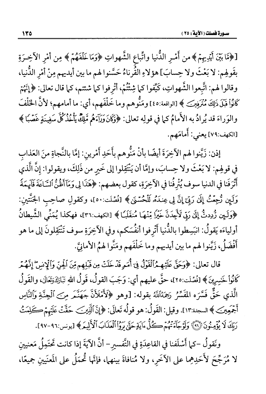 قال تعالى: {وَحَقَّ عَلَيْهِمُ الْقَوْلُ فِي أُمَمٍ قَدْ خَلَتْ مِنْ قَبْلِهِمْ مِنَ الْجِنِّ وَالْإِنْسِ إِنَّهُمْ كَانُوا خَاسِرِينَ} [فُصِّلَت: ٢٥]، حقَّ عليهم أي: وَجَبَ القولُ، قَولُ اللهِ تَبَارَكَ وَتَعَالَى، والقَولُ الَّذي حَقٌّ فَسَّرَه المفَسِّرُ رَحِمَهُ اللهُ بقوله: [وهو {لَأَمْلَأَنَّ جَهَنَّمَ مِنَ الْجِنَّةِ وَالنَّاسِ أَجْمَعِينَ} السجدة: ١٣]. وقيل: القَولُ: هو قولُه تَعالَى: {إِنَّ الَّذِينَ حَقَّتْ عَلَيْهِمْ كَلِمَتُ رَبِّكَ لَا يُؤْمِنُونَ (٩٦) وَلَوْ جَاءَتْهُمْ كُلُّ آيَةٍ حَتَّى يَرَوُا الْعَذَابَ الْأَلِيمَ} [يونس: ٩٦ - ٩٧].