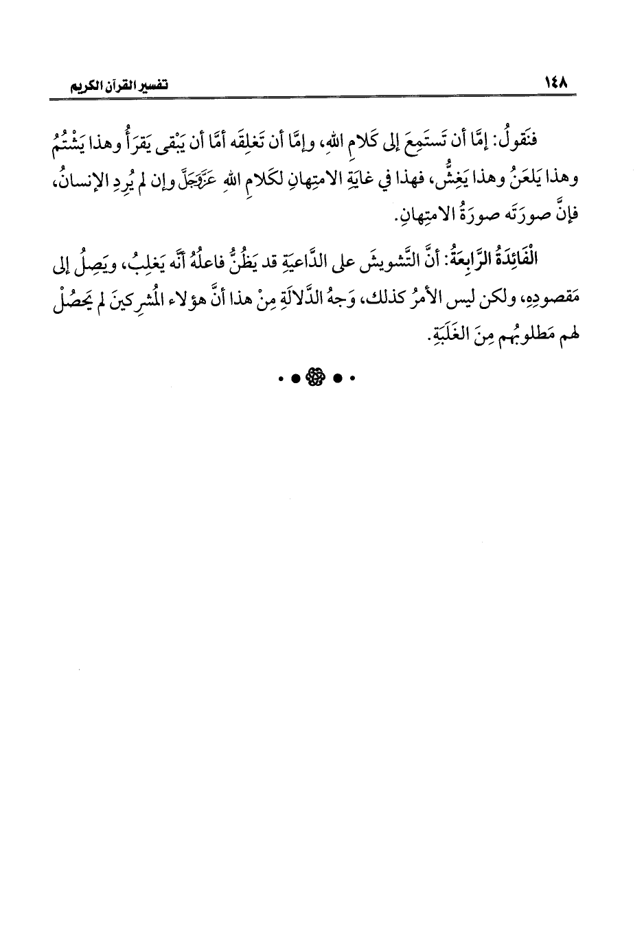 الْفَائِدَةُ الرَّابِعَةُ: أنَّ التَّشويشَ على الدَّاعيَةِ قد يَظُنُّ فاعلُهُ أنَّه يَغلِبُ، وَيصلُ إلى مَقصودِهِ، ولكن ليس الأمرُ كذلك، وَجهُ الدَّلالَةِ مِنْ هذا أنَّ هؤلاء المشُرِكينَ لم يَحصُلْ لهم مَطلوبُهم مِنَ الغَلَبَةِ.