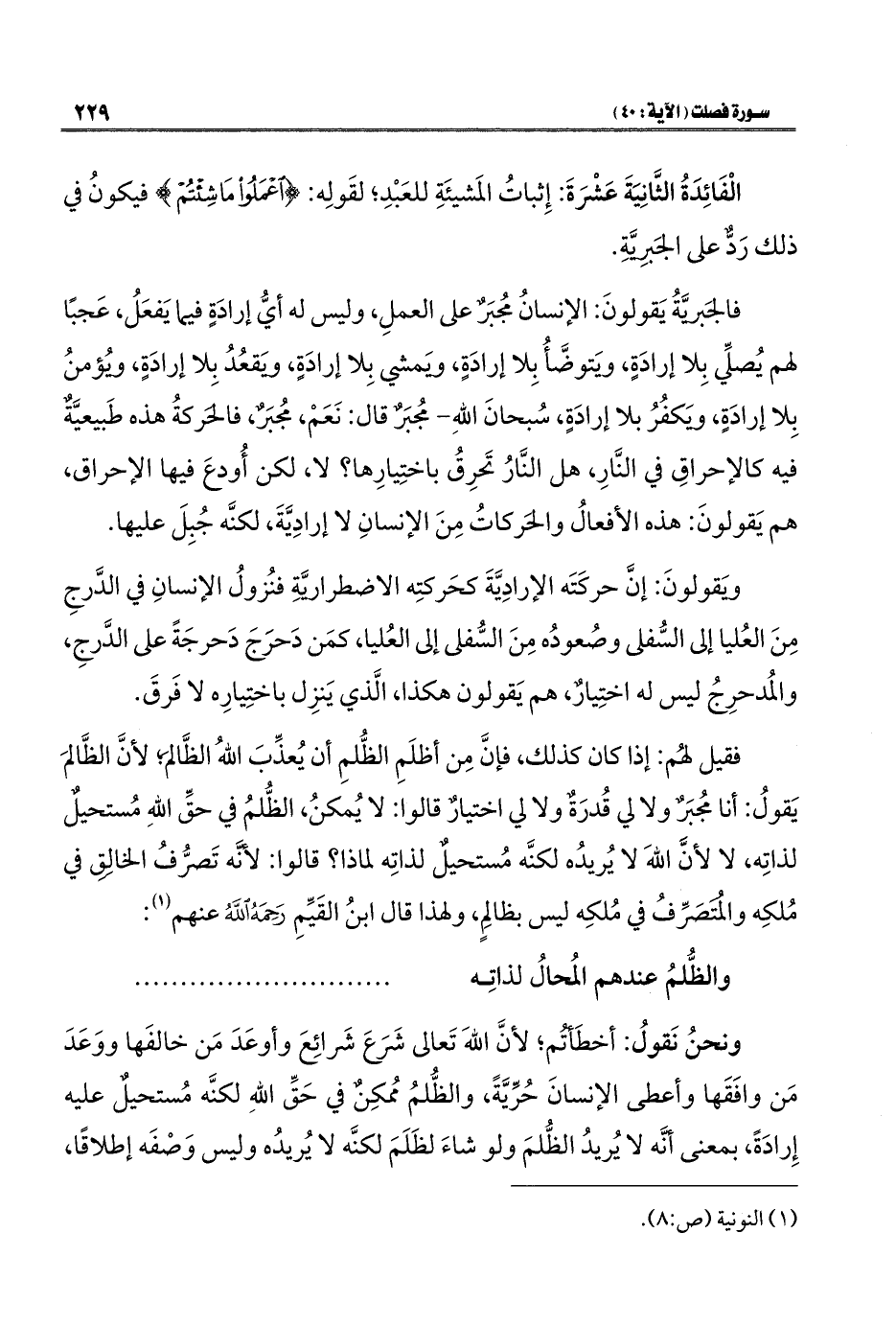 ونحنُ نَقولُ: أخطَأتُم؛ لأنَّ اللهَ تَعالى شَرَعَ شَرائِعَ وأوعَدَ مَن خالفَها ووَعَدَ مَن وافَقَها وأعطى الإنسانَ حُرّيَّةً، والظُّلمُ مُمكِنٌ في حَقِّ اللهِ لكنَّه مُستحيلٌ عليه إِرادَةً، بمعنى أنَّه لا يُريدُ الظُّلمَ ولو شاءَ لظَلَمَ لكنَّه لا يُريدُه وليس وَصْفَه إطلاقًا،
