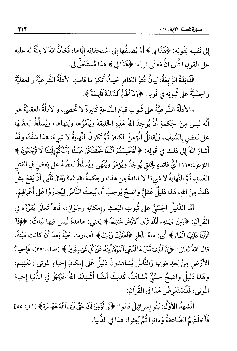 والأدلَّةُ الشَّرعيَّةُ علي ثُبوتِ قيامِ السَّاعةِ كَثيرةٌ لا تُحصى، والأدلَّةُ العقليَّةُ هو أَنَّه ليس مِنَ الحِكمةِ أَنْ يُوجِدَ اللهُ هَذِهِ الخَليقةَ ويَأمُرُها ويَنهاها، ويُسلِّطُ بَعضَهَا علي بَعضٍ بِالسَّيفِ، وَيُقاتلُ المُؤمنُ الكافرَ ثُمَّ تَكونُ النِّهايةُ لا شيءَ، هذا سَفَهٌ، وقَدْ أَشارَ اللهُ إِلي ذلك في قَولِه: {أَفَحَسِبْتُمْ أَنَّمَا خَلَقْنَاكُمْ عَبَثًا وَأَنَّكُمْ إِلَيْنَا لَا تُرْجَعُونَ (١١٥)} [المؤمنون: ١١٥] أيُّ فائدةٍ لِخَلقٍ يُوجَدُ ويُؤمَرُ ويُنْهَي ويُسلَّطُ بَعضُهُ على بَعضٍ في القتلِ العَمدِ، ثُمَّ النِّهايةُ لا شيءَ! لا فائدةَ مِن هذا، وحِكمةُ اللهِ تَبَارَكَ وَتَعَالَى تَأْبَي أَنْ يَقعَ مِثلُ ذَلكَ مِنَ اللهِ، هَذا دَليلٌ عَقليٌّ واضحٌ يُوجبُ أَنْ يُبعثَ النَّاسُ لِيُجازَوْا عَلى أَعْمالهِمْ.
