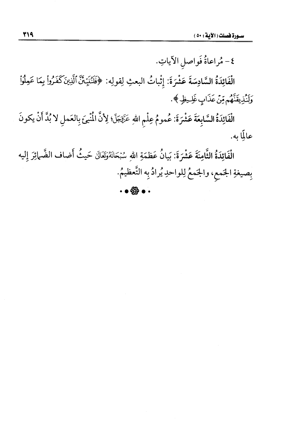 الْفَائِدَةُ الثَّامِنَةَ عَشْرَةَ: بَيانُ عَظمَةِ اللهِ سُبْحَانَهُ وَتَعَالى حَيثُ أَضاف الضَّمائِرَ إِليه بِصيغةِ الجَمعِ، والجَمعُ لِلواحدِ يُرادُ بِه التَّعظيمُ.
