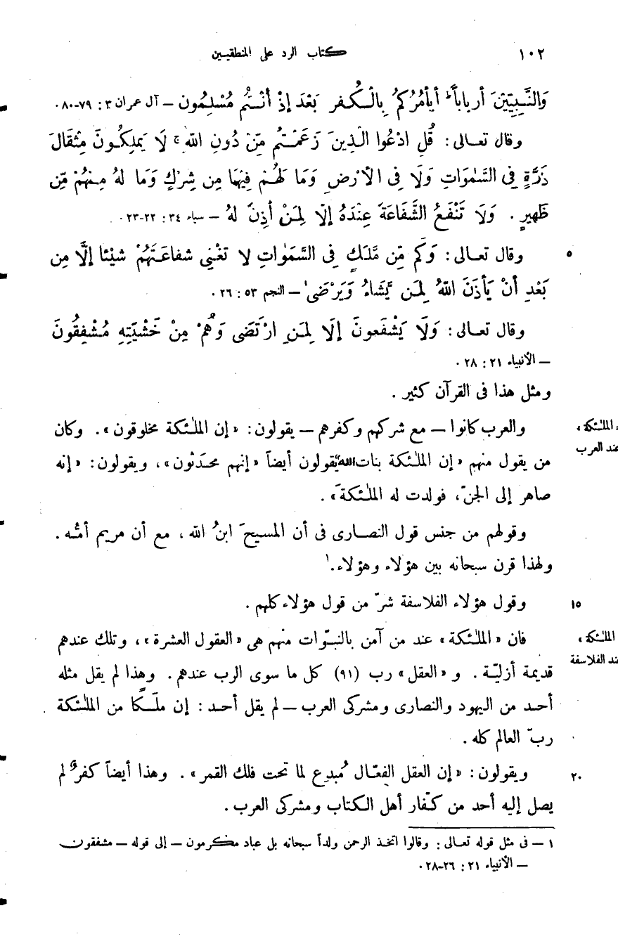 والعرب كانوا مع شركهم وكفرهم يقولون أن الملائكة مخلوقون وكان من يقول منهم أن الملائكة بنات يقولون أيضا أنهم محدثون ويقولون أنه صاهر إلى الجن فولدت له الملائكة.