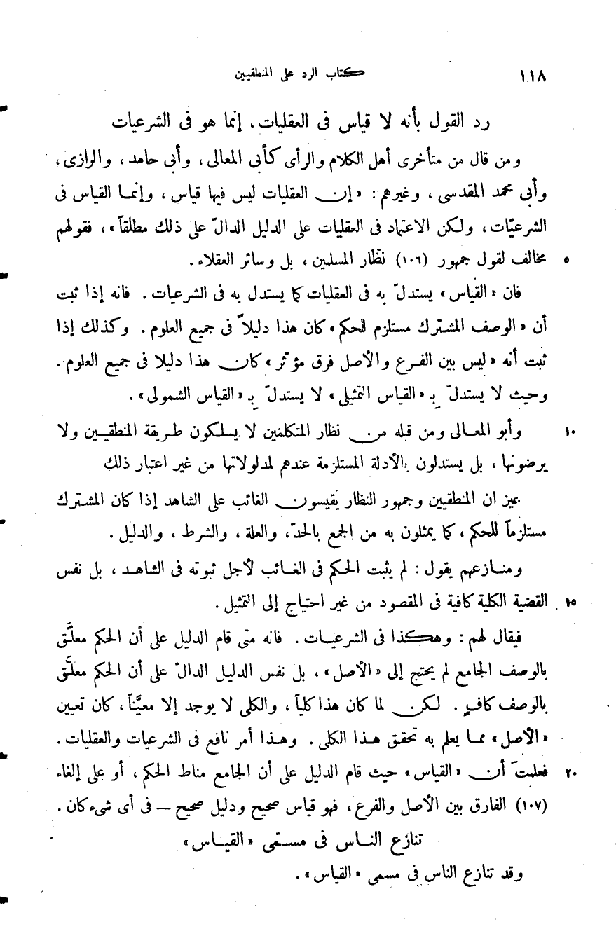 ومن قال من متأخري أهل الكلام والرأي كأبي المعالي وأبي حامد والرازي وأبي محمد المقدسي وغيرهم أن العقليات ليس فيها قياس وإنما القياس في الشرعيات ولكن الاعتماد في العقليات على الدليل الدال على ذلك مطلقا فقولهم مخالف لقول جمهور نظار المسلمين بل وسائر العقلاء.