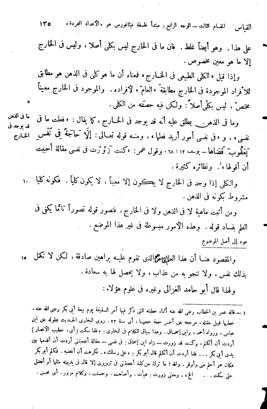 وما في الذهن يطلق عليه أنه قد يوجد الخارج كما يقال فعلت ما في نفسي وفي نفسي أمور أريد فعلها ومنه قوله تعالى: {إلا حاجة في نفس يعقوب قضاها} وقول عمر كنت زورت في نفسي مقالة أحببت أن أقولها ونظائره كثيرة.