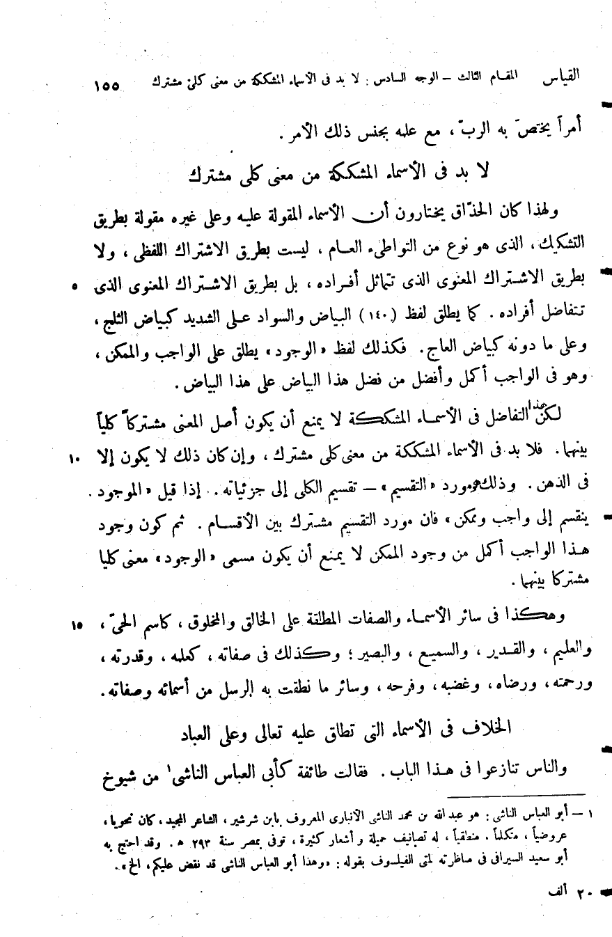 لا بد من الأسماء المشككة من معنى كلى مشترك: