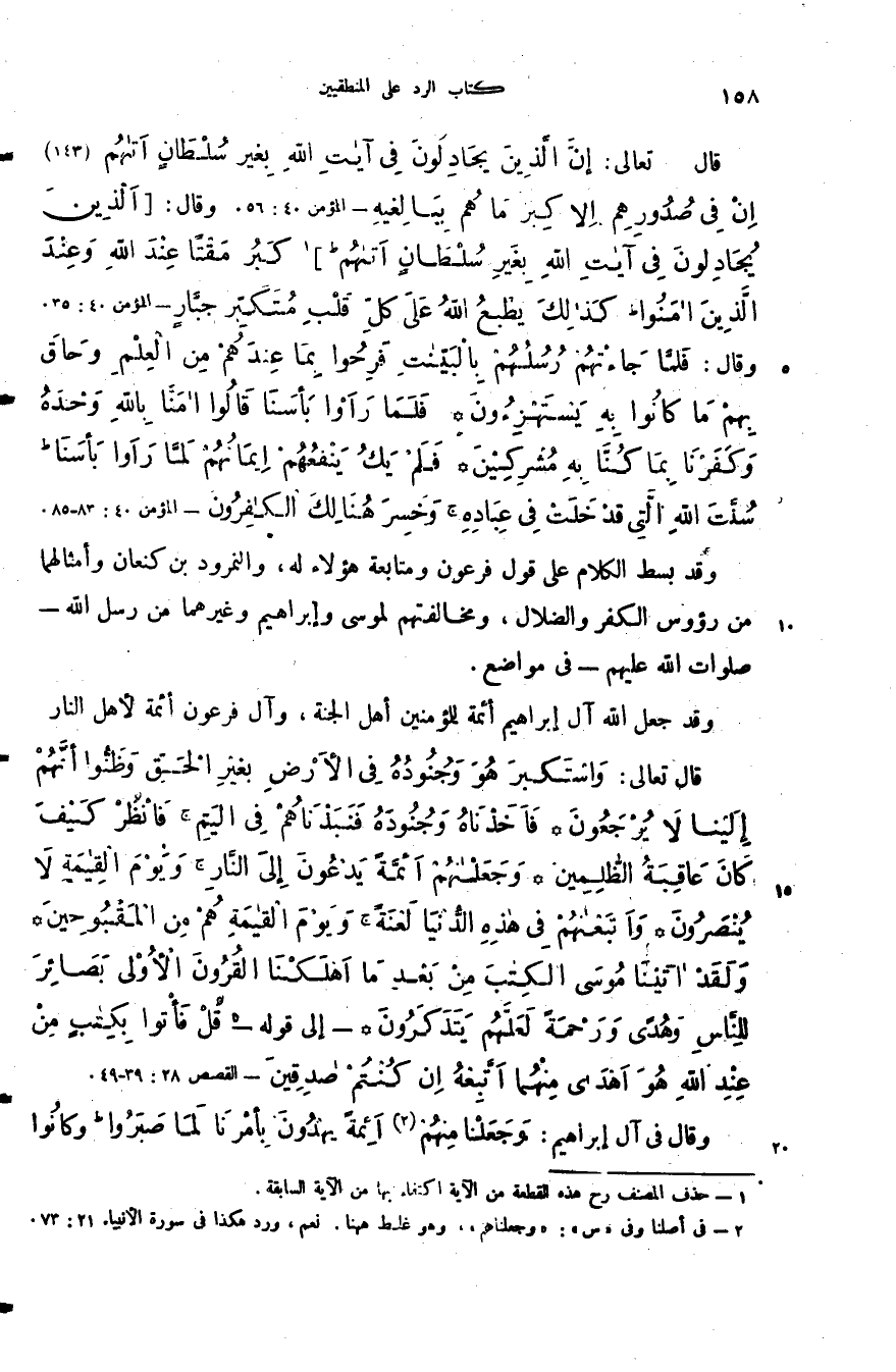 قال الله تعالى: {إِنَّ الَّذِينَ يُجَادِلُونَ فِي آيَاتِ اللَّهِ بِغَيْرِ سُلْطَانٍ أَتَاهُمْ إِنْ فِي صُدُورِهِمْ إِلاّ كِبْرٌ مَا هُمْ بِبَالِغِيهِ} وقال: {الَّذِينَ يُجَادِلُونَ فِي آيَاتِ اللَّهِ بِغَيْرِ سُلْطَانٍ أَتَاهُمْ كَبُرَ مَقْتاً عِنْدَ اللَّهِ وَعِنْدَ الَّذِينَ آمَنُوا كَذَلِكَ يَطْبَعُ اللَّهُ عَلَى كُلِّ قَلْبِ مُتَكَبِّرٍ جَبَّارٍ} وقال: {فَلَمَّا جَاءَتْهُمْ رُسُلُهُمْ بِالْبَيِّنَاتِ فَرِحُوا بِمَا عِنْدَهُمْ مِنَ الْعِلْمِ وَحَاقَ بِهِمْ مَا كَانُوا بِهِ يَسْتَهْزِئُونَ فَلَمَّا رَأَوْا بَأْسَنَا قَالُوا آمَنَّا بِاللَّهِ وَحْدَهُ وَكَفَرْنَا بِمَا كُنَّا بِهِ مُشْرِكِينَ فَلَمْ يَكُ يَنْفَعُهُمْ إِيمَانُهُمْ لَمَّا رَأَوْا بَأْسَنَا سُنَّتَ اللَّهِ الَّتِي قَدْ خَلَتْ فِي عِبَادِهِ وَخَسِرَ هُنَالِكَ الْكَافِرُونَ}