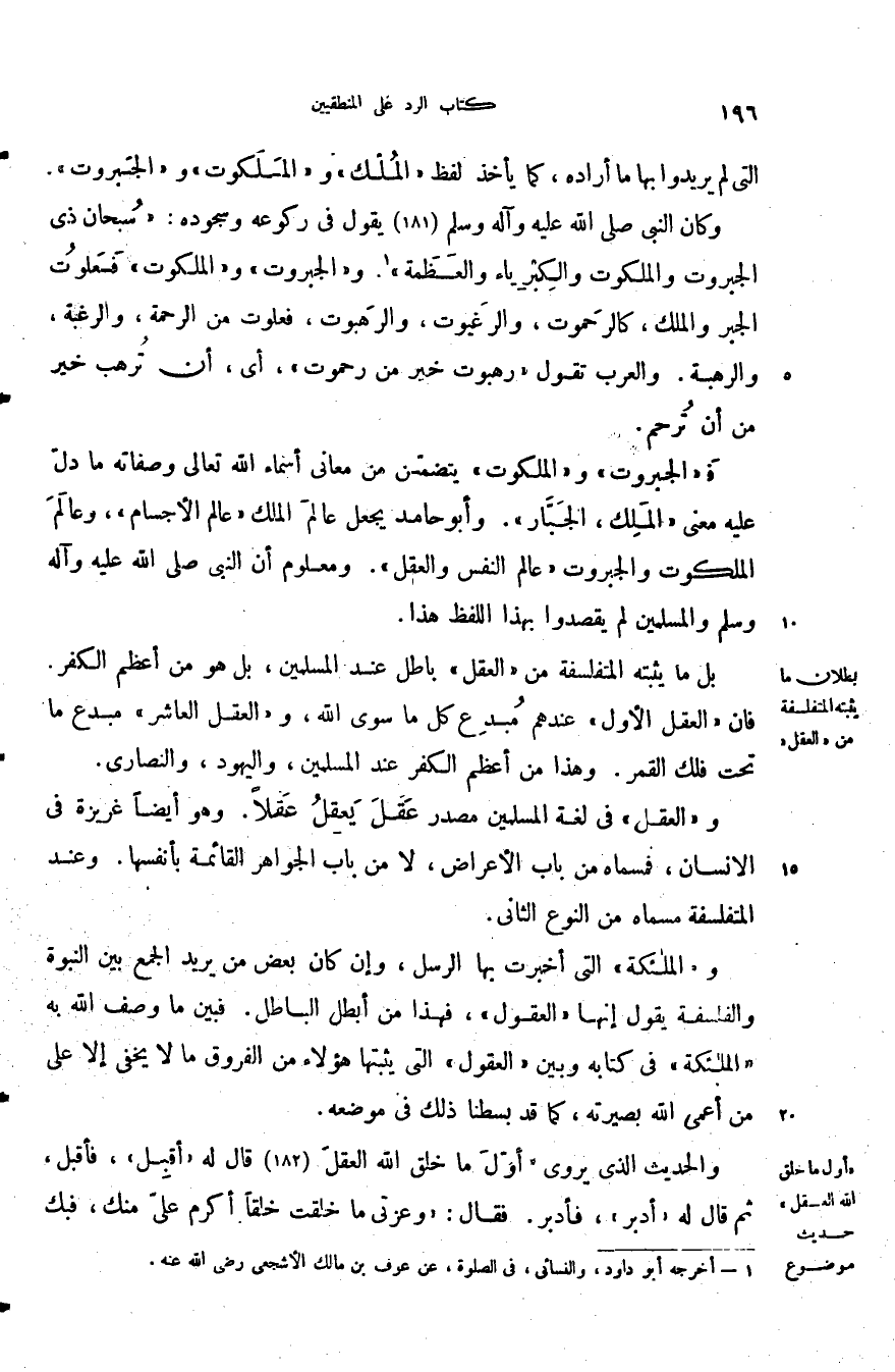 بل ما يثبته المتفلسفة من العقل باطل عند المسلمين بل هو من أعظم الكفر فان العقل الأول عندهم مبدع كل ما سوى الله والعقل العاشر مبدع ما تحت فلك القمر وهذا من أعظم الكفر عند المسلمين واليهود والنصارى.