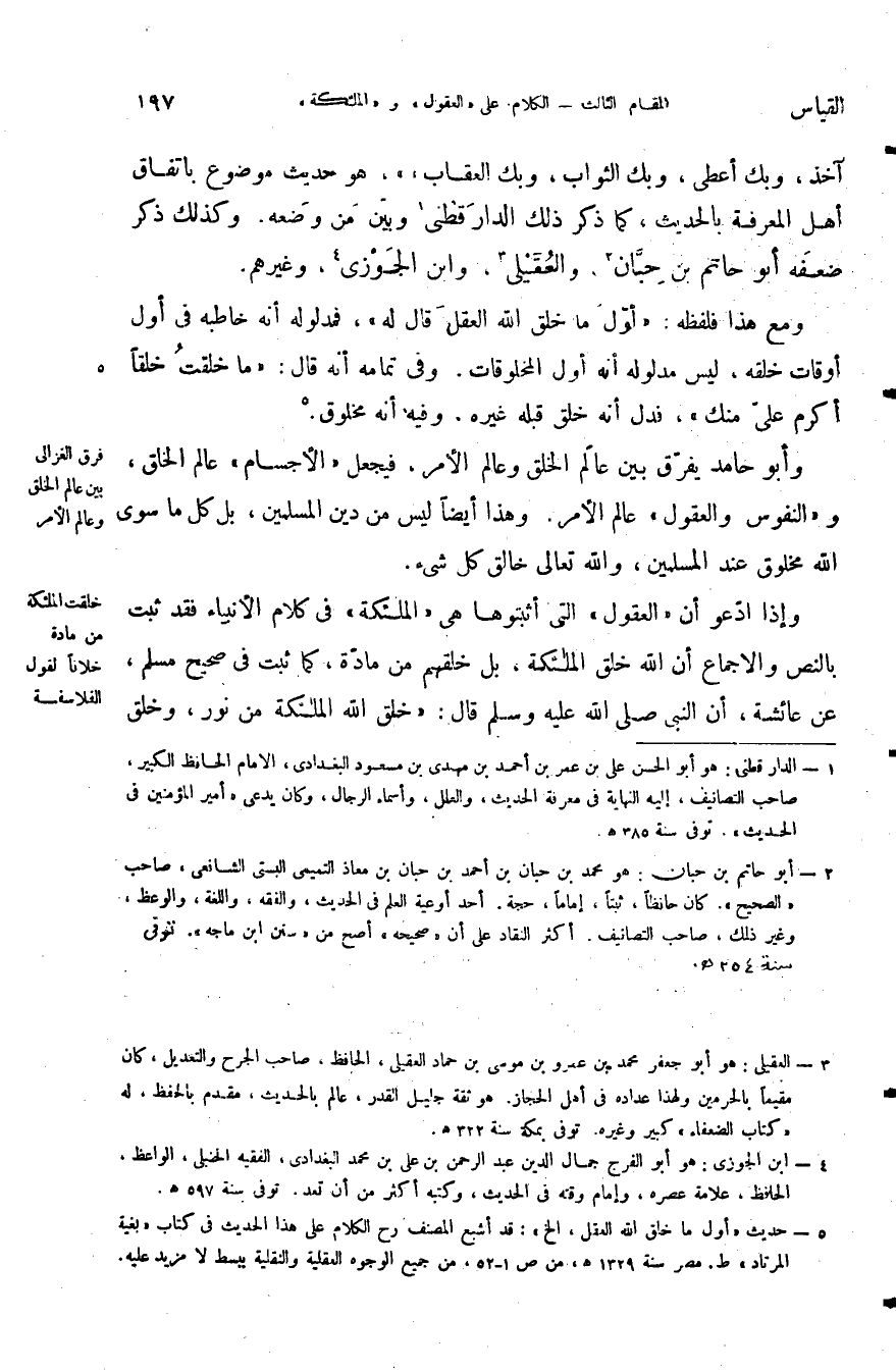 وأبو حامد يفرق بين عالم الخلق وعالم الأمر فيجعل الأجسام عالم الخلق والنفوس والعقول عالم الأمر وهذا أيضا ليس من دين المسلمين بل كل ما سوى الله مخلوق عند المسلمين والله تعالى خالق كل شيء.