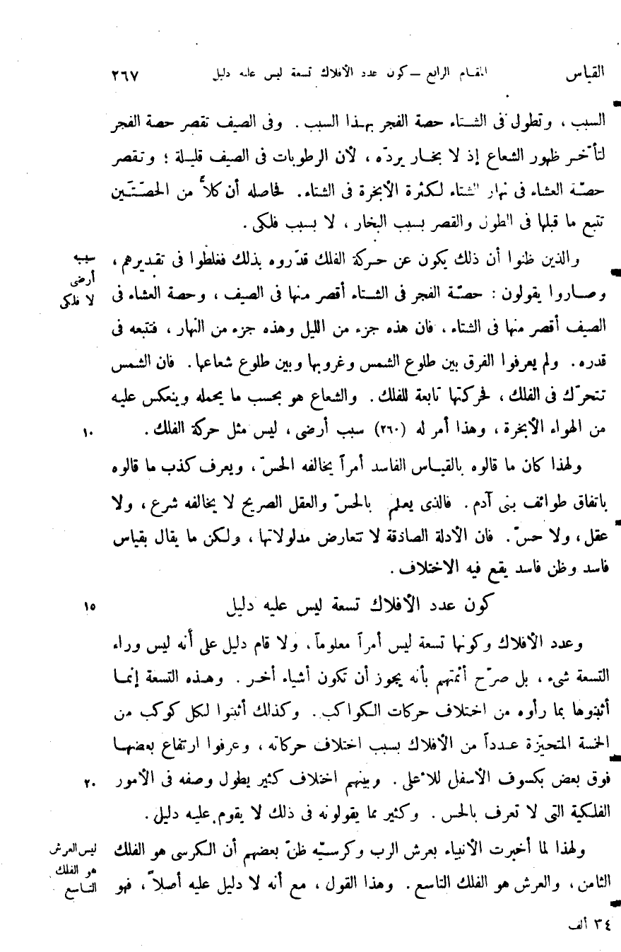 كون عدد الأفلاك تسعة ليس عليه دليل: