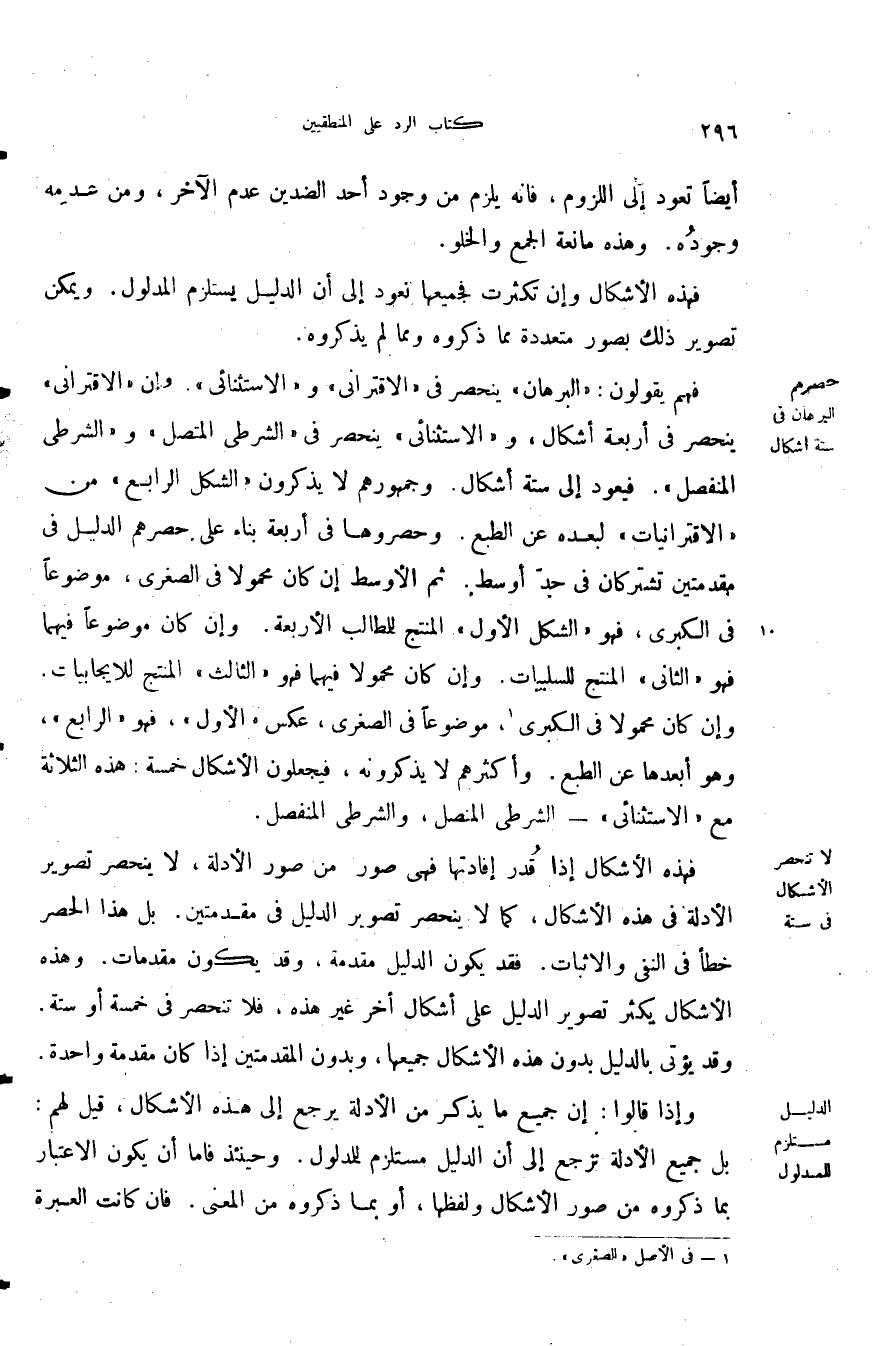 فهذه الأشكال إذا قدر أفادتها فهي صورة من صور الأدلة لا ينحصر تصوير الأدلة في هذه الأشكال كما لا ينحصر تصوير الدليل في مقدمتين بل هذا الحصر خطأ في النفي والإثبات فقد يكون الدليل مقدمة وقد يكون مقدمات وهذه الأشكال تكثر تصوير الدليل على أشكال أخر غير هذه فلا تنحصر في خمسة أو ستة وقد يؤتى بالدليل بدون هذه الأشكال جميعها وبدون المقدمتين إذا كان مقدمة واحدة.