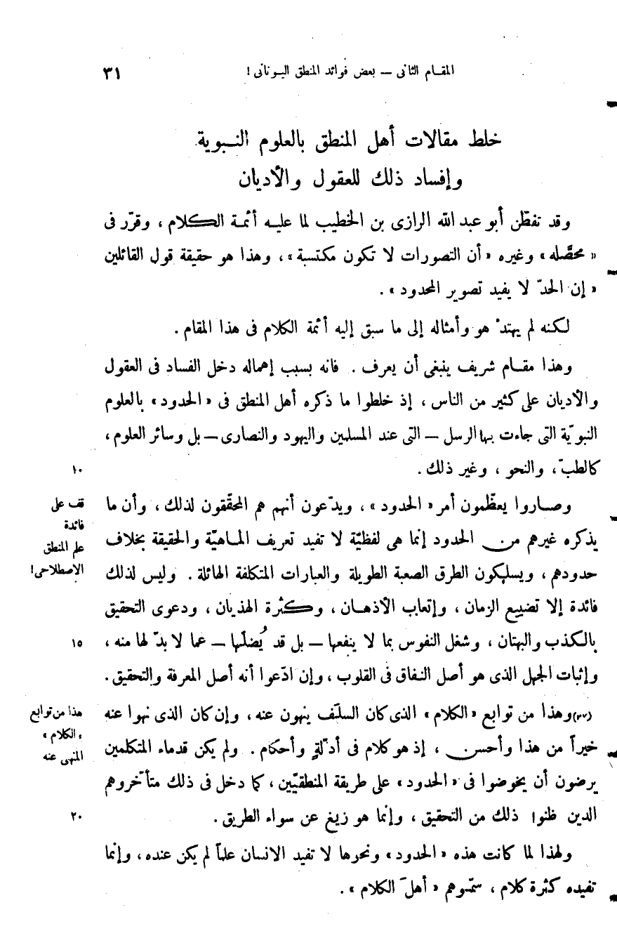 خلط مقالات أهل المنطق بالعلوم النبوية وإفساد ذلك للعقول والأديان: