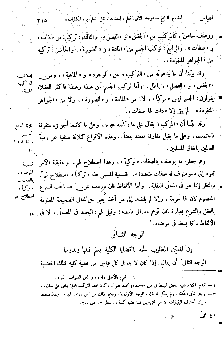 الوجه الثاني: أن يقال إذا كان لا بد في كل قياس من قضية كلية فتلك القضية