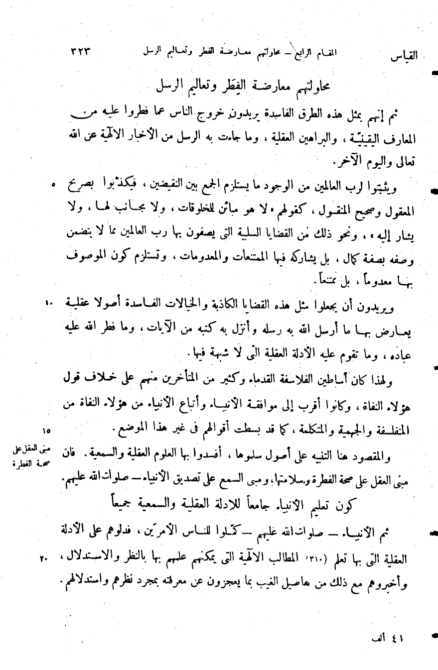 ويريدون أن يجعلوا مثل هذه القضايا الكاذبة والخيالات الفاسدة اصولا عقلية يعارض بها ما ارسل الله به رسله وأنزل به كتبه من الايات وما فطر الله عليه عباده وما تقوم عليه الأدلة العقلية التي لا شبهة فيها.