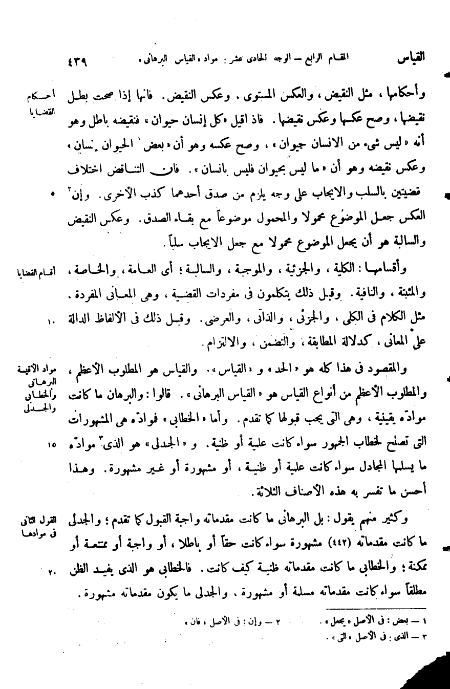 والمقصود في هذا كله هو الحد والقياس والقياس هو المطلوب الأعظم والمطلوب الأعظم من أنواع القياس هو القياس البرهاني قالوا والبرهان ما كانت مواده يقينية وهي التي يجب قبولها كما تقدم وأما الخطابي فمواده هي المشهورات التي تصلح لخطاب الجمهور سواء كانت علمية أو ظنية والجدلي هو الذي مواده ما يسلمها المجادل سواء كانت علمية أو ظنية أو مشهورة أو غير مشهورة وهذا أحسن ما تفسر به هذه الأصناف الثلاثة.