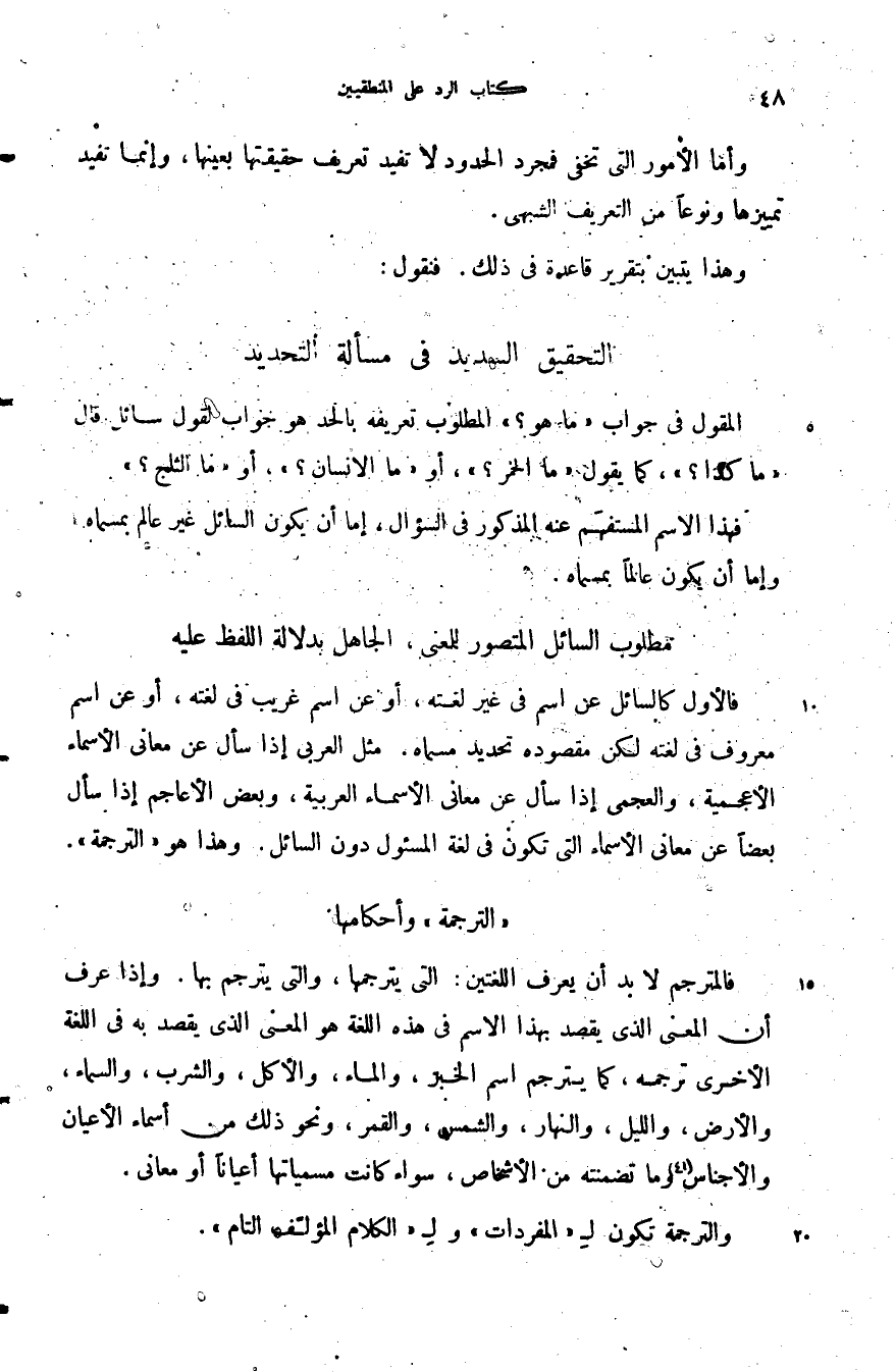 المقول في جواب (ما هو) المطلوب تعريفه بالحد هو جواب لقول سائل قال ما كذا كما يقول ما الخمر؟ أو ما الإنسان؟ أو ما الثلج؟.