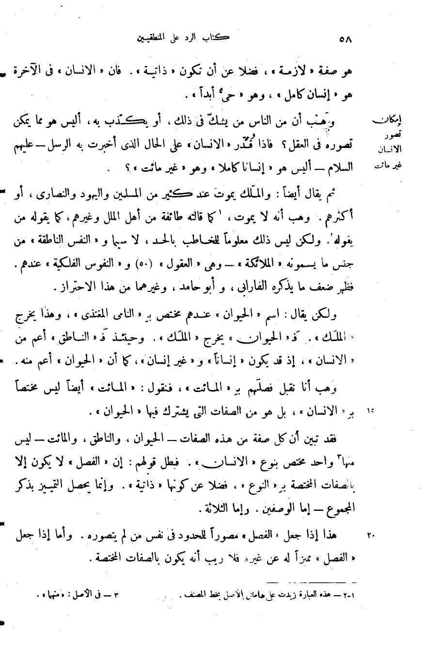 وهب أنا نقبل فصلهم ب المائت فنقول المائت أيضا ليس مختصا بالإنسان بل هو من الصفات التي يشترك فيها الحيوان.