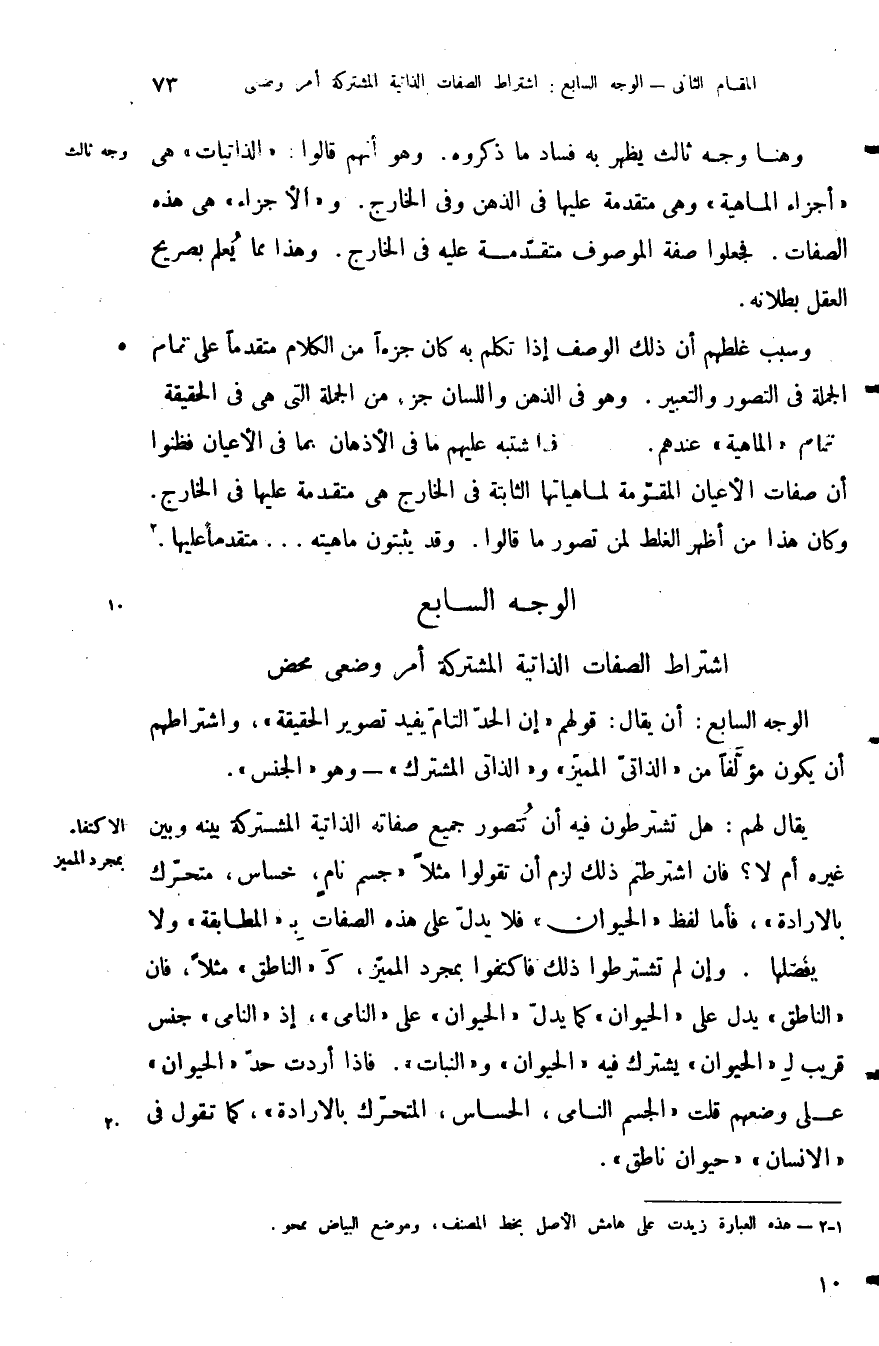 الوجه السابع: أن يقال قولهم أن الحد التام يفيد تصوير الحقيقة واشتراطهم أن يكون مؤلفا من الذاتي المميز والذاتي المشترك وهو الجنس.