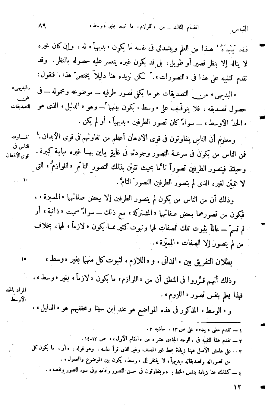 وذلك أنهم قرروا في المنطق أن من اللوازم ما يكون لازما بغير وسط فهذا يعلم بنفس تصور الملزوم.