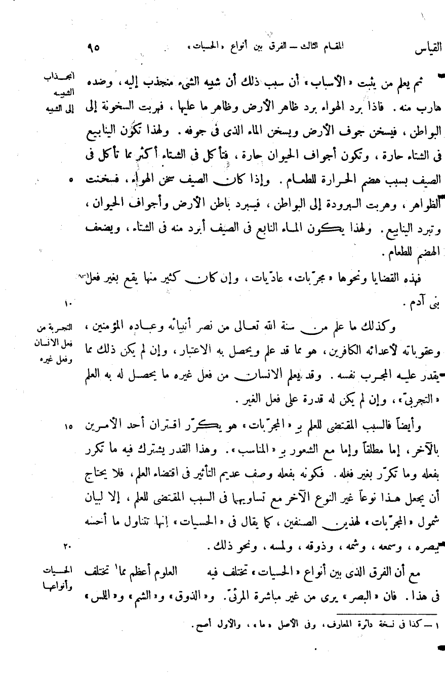 وأيضا فالسبب المقتضى للعلم ب المجربات هو يكرر اقتران أحد الأمرين بالآخر أما مطلقا وأما مع الشعور بالمناسب وهذا القدر يشترك فيه ما تكرر بفعله وما تكرر بغير فعله فكونه بفعله وصف عديم التأثير في اقتضاء العلم فلا يحتاج أن يجعل هذا نوعا غير النوع الآخر مع تساويهما في السبب المقتضى للعلم إلا لبيان شمول المجربات لهذين الصنفين كما يقال في الحسيات أنها تتناول ما أحسه ببصره وسمعه وشمه وذوقه ولمسه ونحو ذلك.