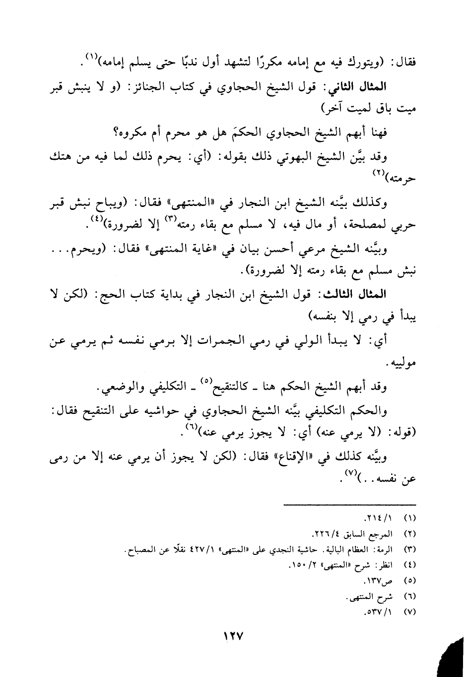 المثال الثاني: قول الشيخ الحجاوي في كتاب الجنائز: (ولا ينبش قبر ميت باق لميت آخر)