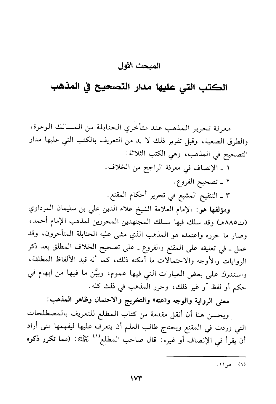 معرفة تحرير المذهب عند متأخري الحنابلة من المسالك الوعرة، والطرق الصعبة، وقبل تقرير ذلك لا بد من التعريف بالكتب التي عليها مدار التصحيح في المذهب، وهي الكتب الثلاثة: