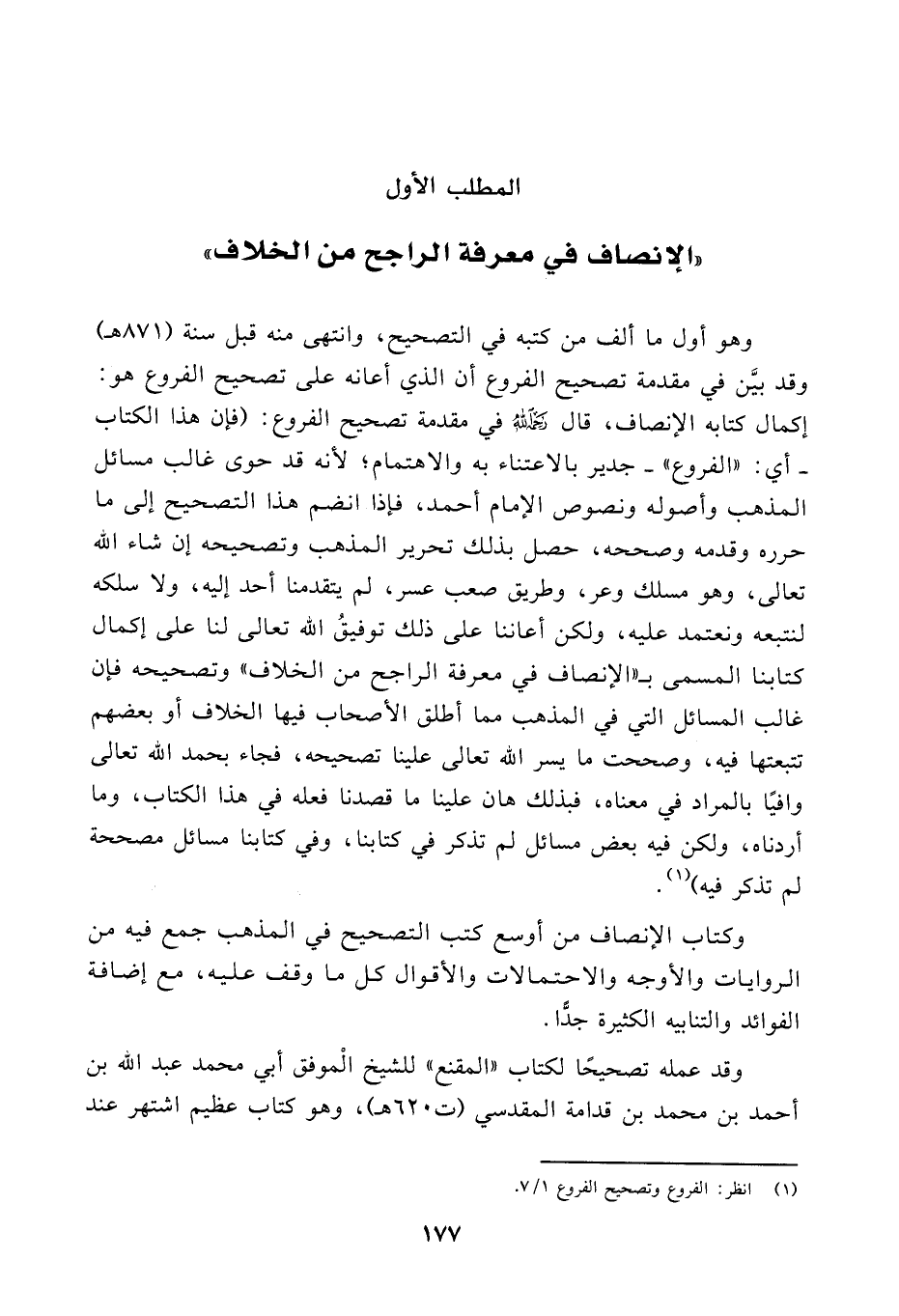 المطلب الأول: "الإنصاف في معرفة الراجح من الخلاف":