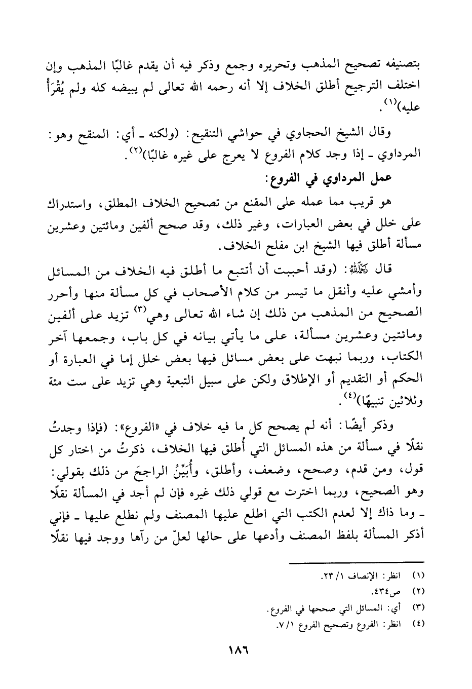 عمل المرداوي في الفروع: