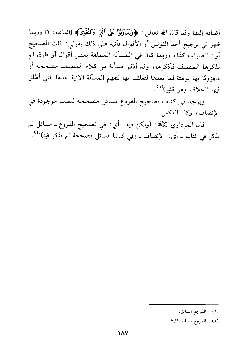 ويوجد في كتاب تصحيح الفروع مسائل مصححة ليست موجودة في الإنصاف، وكذا العكس.