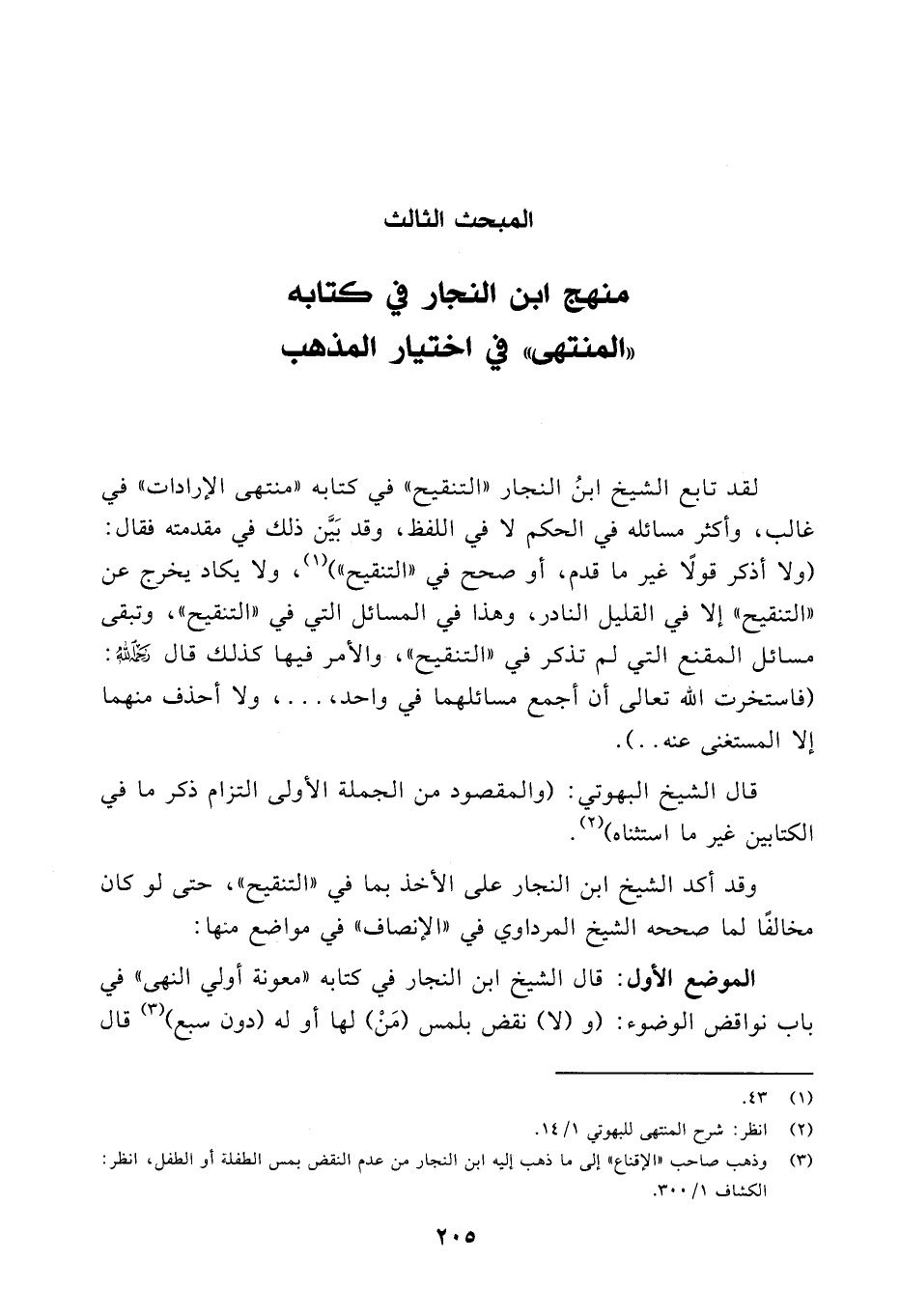 المبحث الثالث: منهج ابن النجار في كتابه " المنتهى "في اختيار المذهب: