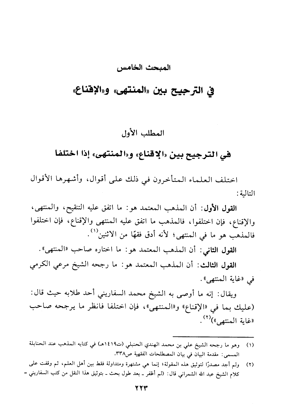 المطلب الأول: في الترجيح بين "الإقناع" و"المنتهى" إذا اختلفا: