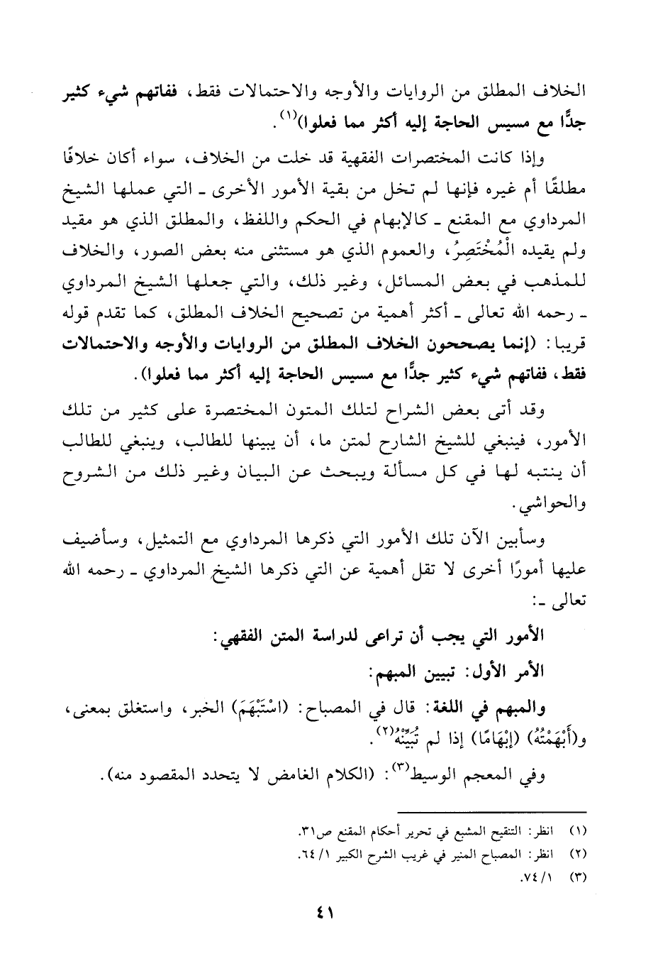 الأمور التي يجب أن تراعى لدراسة المتن الفقهي: