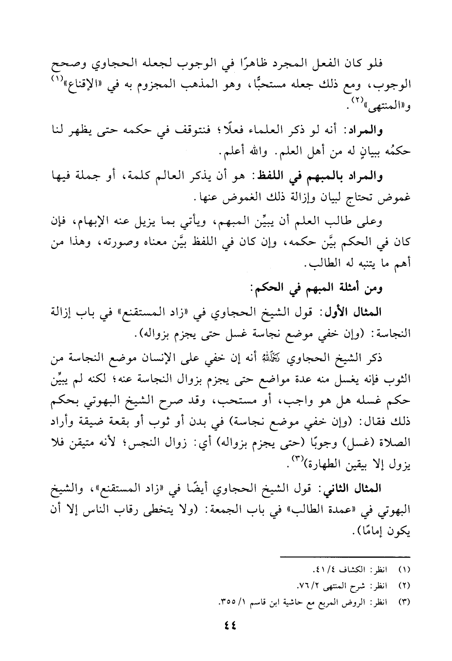 وعلى طالب العلم أن يبين المبهم، ويأتي بما يزيل عنه الإبهام، فإن كان في الحكم بين حكمه، وإن كان في اللفظ بين معناه وصورته، وهذا من أهم ما يتنبه له الطالب.