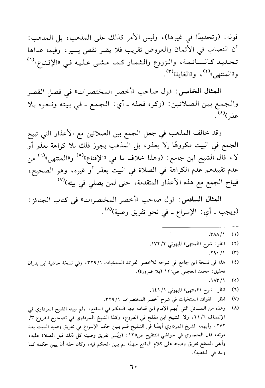 (¬٦) انظر: شرح " المنتهى " للبهوتي ١/ ٦٤١.