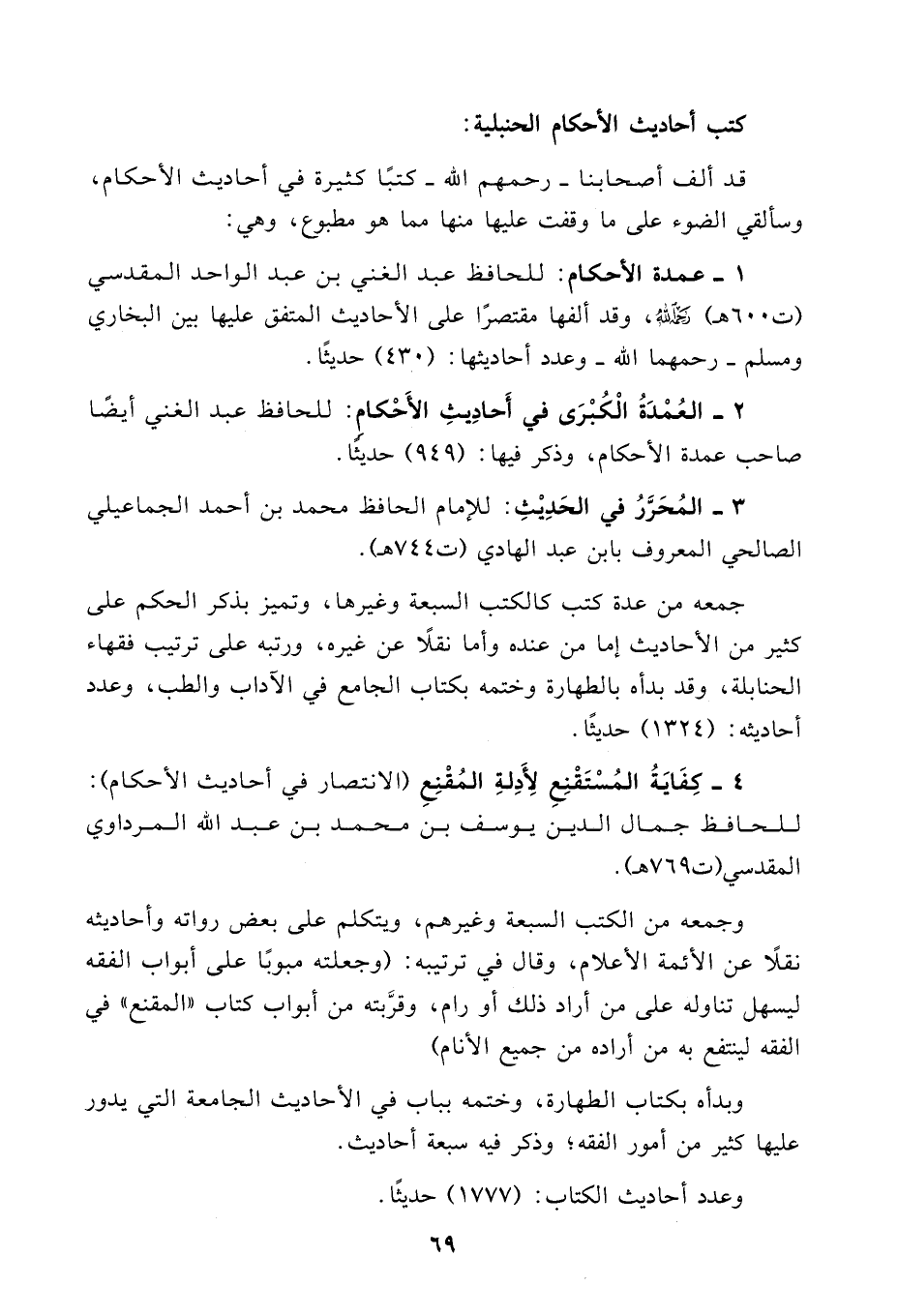 ٣ - المُحَرَّرُ في الحَدِيْثِ: للإمام الحافظ محمد بن أحمد الجماعيلي الصالحي المعروف بابن عبد الهادي (ت ٧٤٤).