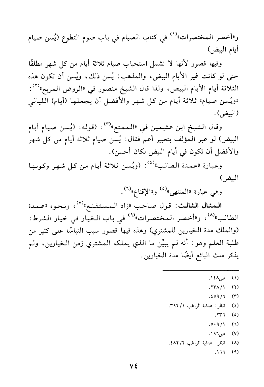 وعبارة "عمدة الطالب" (¬٤): (ويسن ثلاثة أيام من كل شهر وكونها البيض)