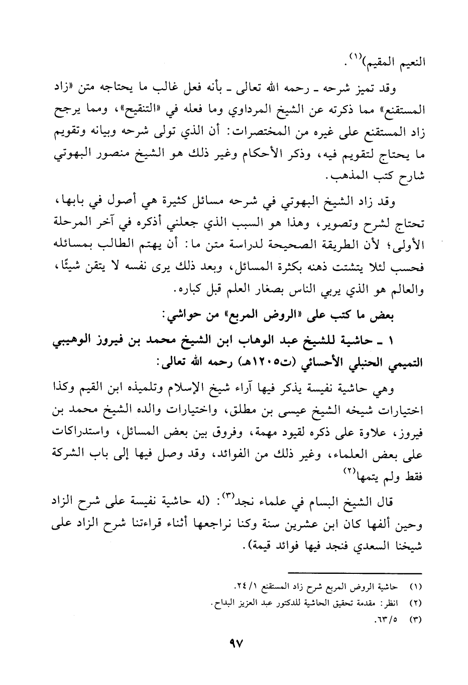 (¬١) حاشية الروض المربع شرح زاد المستقنع ١/ ٢٤.