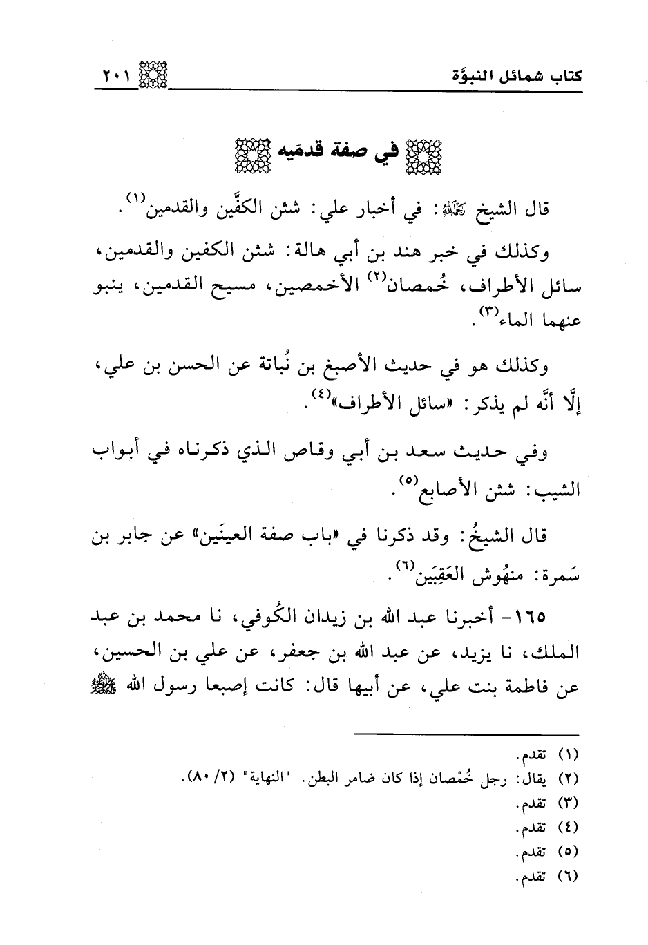 قال الشيخ رحمه الله: في أخبار علي: شثن الكفين والقدمين.