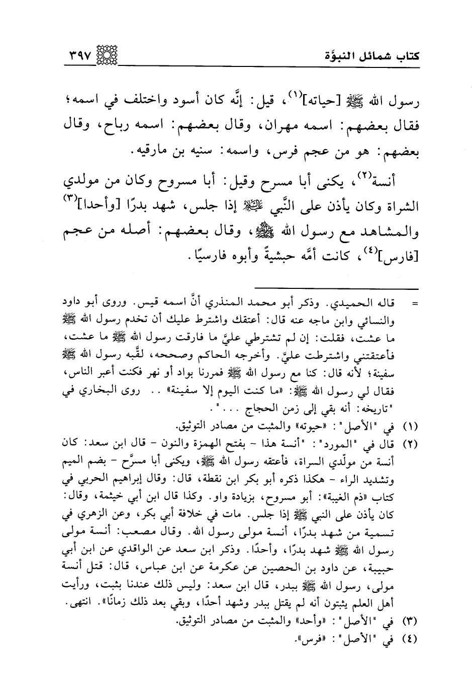 أنسة، يكنى أبا مسرح وقيل: أبا مسروح وكان من مولدي الشراة وكان يأذن على النبي عليه السلام إذا جلس، شهد بدرا [وأحدا] والمشاهد مع رسول الله صلى الله عليه وسلم، وقال بعضهم: أصله من عجم [فارس]، كانت أمه حبشية وأبوه فارسيا.
