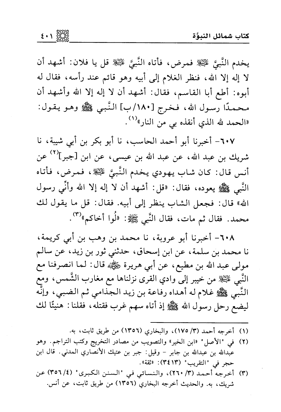 607 - أخبرنا أبو أحمد الحاسب، نا أبو بكر بن أبي شيبة، نا شريك بن عبد الله، عن عبد الله بن عيسى، عن ابن [جبر] عن أنس قال: كان شاب يهودي يخدم النبي عليه السلام، فمرض، فأتاه النبي صلى الله عليه وسلم يعوده، فقال: "قل: أشهد أن لا إله إلا الله وأني رسول الله" قال: فجعل الشاب ينظر إلى أبيه. فقال: قل ما يقول لك محمد. فقال ثم مات، فقال النبي صلى الله عليه وسلم: "لوا أخاكم".