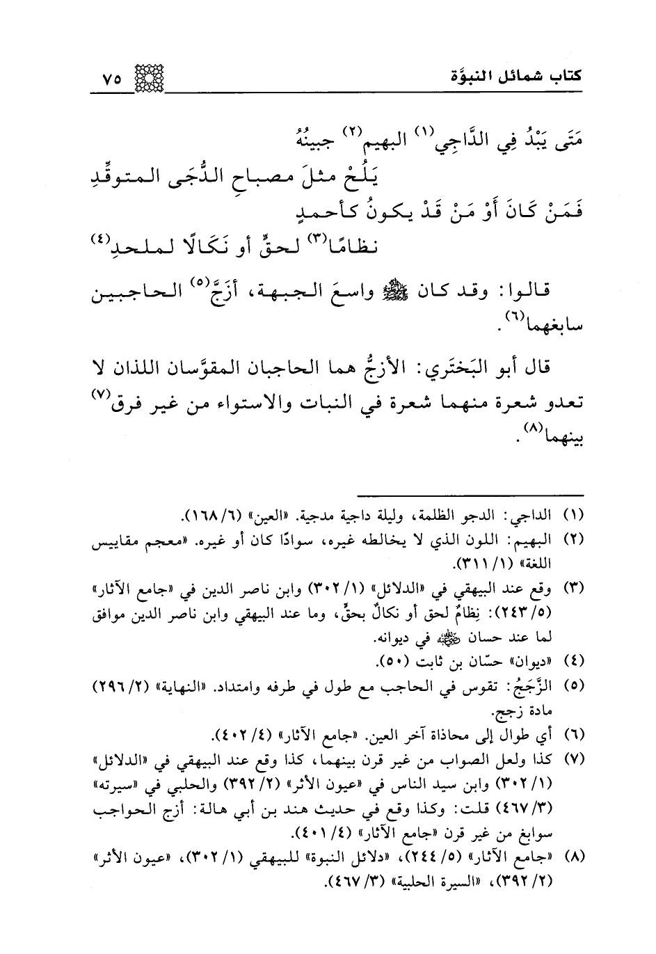 قالوا: وقد كان صلى الله عليه وسلم واسع الجبهة، أزج الحاجبين سابغها