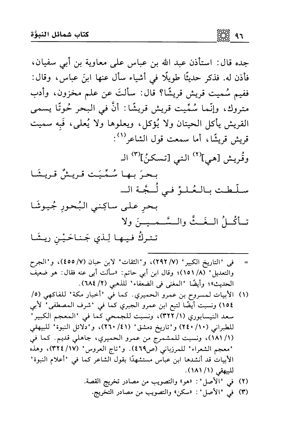 وقريش [هي] التي [تسكن] الـ ........ بحر بها سميت قريش قريشا
